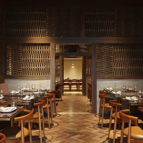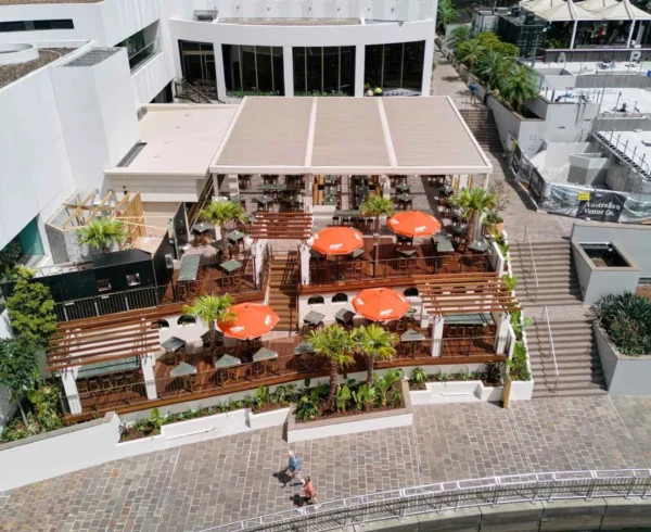 Discover a lush, two-tiered bar and terrace offering panoramic views and a relaxed, alfresco atmosphere. With space for up to 500 guests, this outdoor terrace is ideal for sun-drenched cocktails, late-night gatherings, and spontaneous celebrations. The menu features Middle Eastern and East Mediterranean-inspired bites, best enjoyed with a curated wine list, signature cocktails, and a breeze off the Brisbane River.